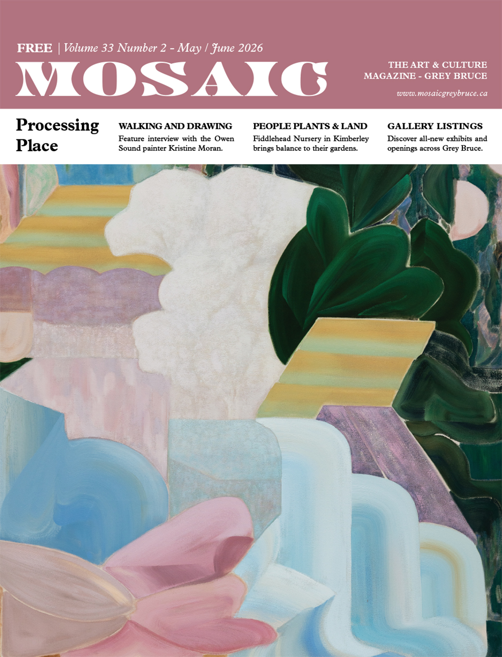 MOSAIC is published 5 times per year and distributed for free across Grey and Bruce counties in local shops, galleries, theatres, cafes and wherever the creative community gathers.